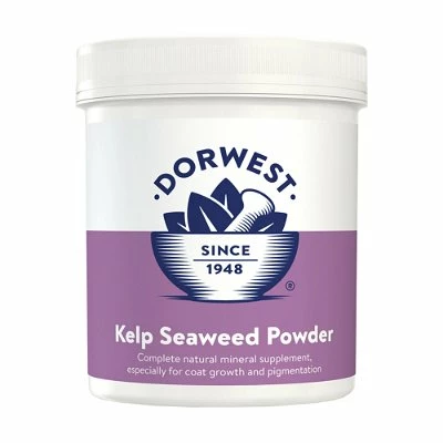 Dorwest Kelp Seaweed Powder is a complementary food supplement for general wellbeing and skin and coat health in dogs and cats. This powdered supplement is packed with specially selected variety of kelp, Fucus vesiculosus, with the 37 essential minerals and trace elements that your pet needs for optimal health. It is an all-natural powder that serves as a comprehensive nutritional supplement, promoting thicker coat growth and enhancing pigmentation, particularly during the winter season. The kelp used is been sourced from sustainable deep-sea locations and is tested to British Herbal Pharmacopoeia standards, guaranteeing it is free from heavy metals and contaminants and ensuring its purity and quality. With no added flavoring, coloring, additives, or preservatives, the powder is safe and suitable for use in pets from 8 weeks of age and for pregnant and lactating females.