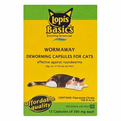 Lopis Basics Worm Away Deworming Capsules for Cats is a safe and effective deworming treatment. It is indicated for the treatment and control of intestinal infections/ infestations of cats. Composed with a potent active ingredient – Piperazine Citrate, it effectively eliminates roundworms from cat’s body. This treatment is designed in an easy to administer capsules that loved by most cats. It is suitable for cats and kittens from 3 weeks of age including, all breeds and sizes.