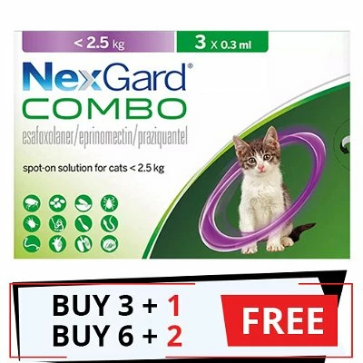 Your favorite Nexgard has gotten better and more versatile! Nexgard Combo is exclusively designed to offer your felines all-around protection with just one treatment. The improved version of Nexgard is the first-of-its-kind treatment that efficiently works on both internal and external parasites in 8 weeks and older kittens and cats that weigh 0.8kg or more.