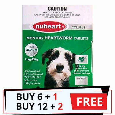 Nuheart up to 24 to 50lbs (Red) is a monthly heartworm preventive tablet for dogs. It is the generic version of Heartgard but more cost-effective than the original treatment. It contains the same ingredient as Heartgard – Ivermectin, with the same dose. Recommended for puppies at least 6 weeks of age, this oral tablet is a highly recommended treatment for heartworm prevention in medium dogs. It is very easy to administer due to its meat flavor property that makes dogs easily accept the tablet (11-23 kg).